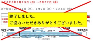 現在記載している通行止め日時以降も通行止めを伴う工事を予定しておりますので、詳細が決まり次第、情報を更新いたします。