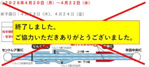 ※上記期間のうち2日間程度通行止め予定